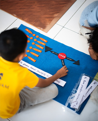 Our Elementary environment provides an opportunity for children in different age groups to learn, share, practice, teach and explore together. The children in the age group of 6-9 years will be in Lower Elementary and the age group of 9-12 years will be in Upper Elementary. It is curated based on the developmental needs of individual children. At Sarvvam, learning happens not only through the guidance of the Adults, but also through the child’s experimenting, researching, exploring and working in groups. Our children work with concrete materials which are intellectually stimulating, that leads them towards logical conclusions of abstract work. Our Elementary environment is led by the children who know that they are respected and valued as individuals. Children in the environment learn life skills such as self-direction, organization, responsibility and interpersonal cooperation.